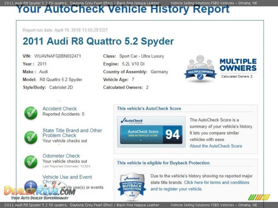 Back to this 2011 Audi R8 Spyder 5.2 FSI quattro