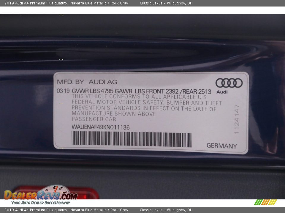 2019 Audi A4 Premium Plus quattro Navarra Blue Metallic / Rock Gray Photo #22